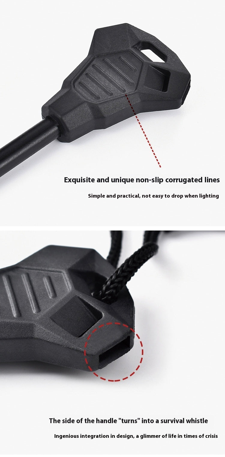 Measuring 13cm by 4.5cm for the magnesium rod and 7.5cm by 2cm for the scraper, this lightweight yet rugged kit is easy to carry and highly efficient in the wild. With its sleek black finish and multifunctional design, it adapts seamlessly to a variety of survival environments, from camping and hiking to emergency preparedness. Whether you need to build a fire, signal for help, open bottles, or tackle quick fixes, this tool is your ultimate ally for outdoor living—compact in size, but massive in function.